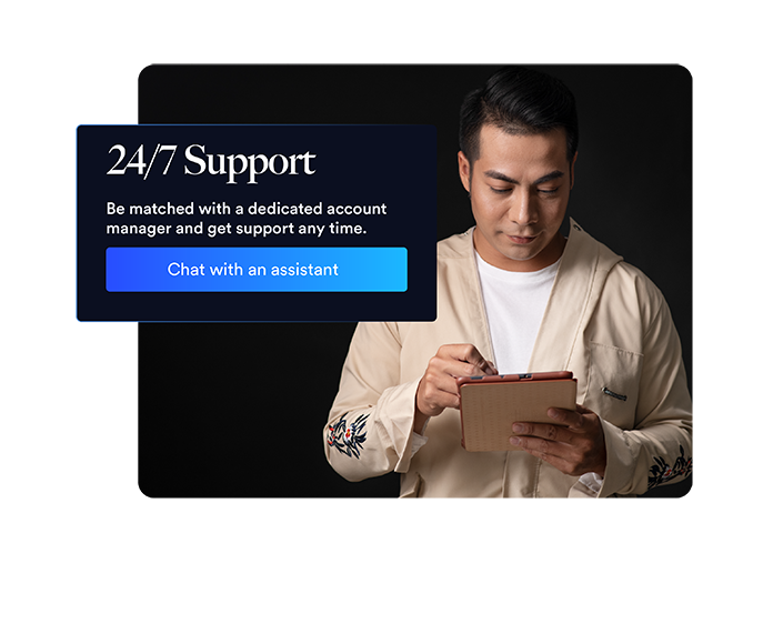 Round-the-clock support with dedicated account managers who guide you through every step of the process.